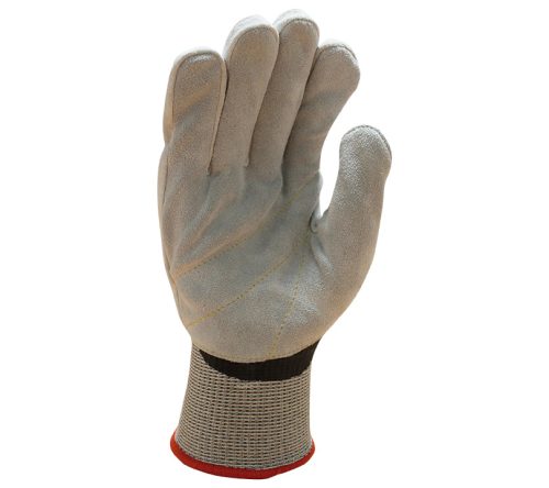 Water repellent split leather that provides good grip and greater mechanical resistance and durability in wet or oiled environments.
